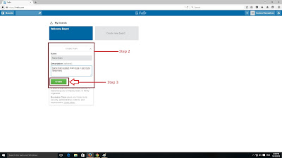 1. Step 1,2,3, Klik "Create New Board" kemudian isi Tittle Board yang di inginkan misalkan RamaTeam Meetup Schedule lalu Klik "Create"